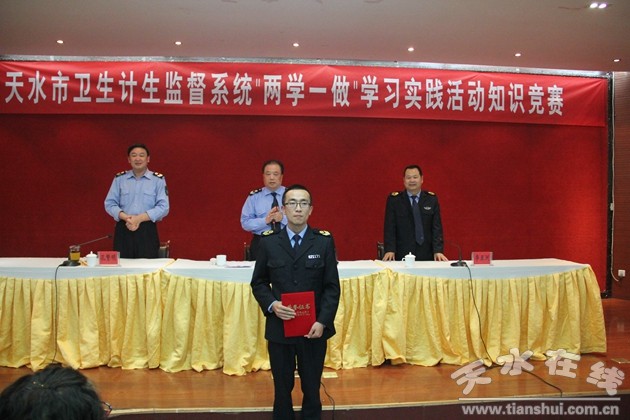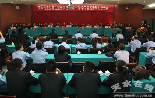 為認(rèn)真貫徹中央和省、市委有關(guān)“兩學(xué)一做”學(xué)習(xí)教育精神,全面落實(shí)市衛(wèi)生計(jì)生委黨委關(guān)于“兩學(xué)一做”學(xué)習(xí)教育工作具體要求,用衛(wèi)生計(jì)生監(jiān)督工作自覺踐行“兩學(xué)一做”學(xué)習(xí)教育安排部署,進(jìn)一步規(guī)范天水市衛(wèi)生行政執(zhí)法行為,促進(jìn)執(zhí)法人員履行法定義務(wù),規(guī)范執(zhí)法程序,進(jìn)一步提高衛(wèi)生監(jiān)督人員的業(yè)務(wù)能力,以實(shí)際行動(dòng)確保學(xué)習(xí)教育扎實(shí)有效,市衛(wèi)生和計(jì)劃生育綜合監(jiān)督執(zhí)法局于2017年9月12日至13日舉辦了全市“衛(wèi)生計(jì)生監(jiān)督系統(tǒng)兩學(xué)一做”學(xué)習(xí)實(shí)踐活動(dòng)知識(shí)競(jìng)賽暨案例評(píng)析、執(zhí)法過程全記錄培訓(xùn)活動(dòng);顒(dòng)為期2天。市衛(wèi)計(jì)委王引平副主任及相關(guān)科室負(fù)責(zé)人以及來自市局和6個(gè)縣(區(qū))衛(wèi)生計(jì)生綜合監(jiān)督執(zhí)法機(jī)構(gòu)分管領(lǐng)導(dǎo)、業(yè)務(wù)骨干等相關(guān)人員共110人參加了本次活動(dòng)。