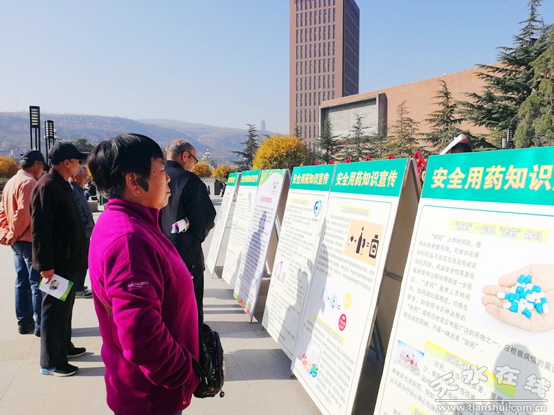 10月31日,天水市2018年“全國安全用藥月”宣傳活動(dòng)啟動(dòng)儀式在秦州區(qū)天河廣場(chǎng)舉行。此次宣傳活動(dòng)的主題是“安全用藥•共享健康”。天水市食品藥品監(jiān)督管理局局長陳克孝、天水市食安辦專職副主任唐宇宏等現(xiàn)場(chǎng)指導(dǎo)宣傳活動(dòng)。天水市食品藥品監(jiān)督管理局及直屬單位、秦州區(qū)食品藥品監(jiān)督管理局及轄區(qū)內(nèi)相關(guān)醫(yī)療機(jī)構(gòu)、家庭過期藥品回收點(diǎn)共10余家單位參加啟動(dòng)儀式宣傳活動(dòng)。