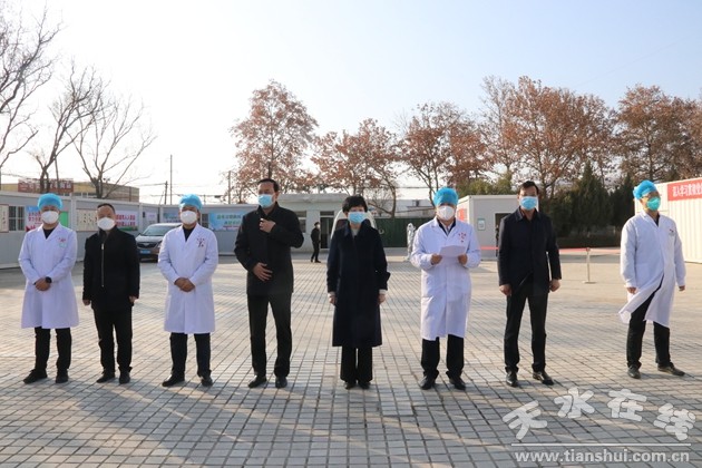 在康復(fù)醫(yī)學(xué)觀察工作期間,市委書記張永霞,市委副書記、市長王國先,市政府黨組成員、副市長汪小娟,市政府黨組成員逯克宗先后來醫(yī)院看望一線醫(yī)務(wù)人員并作出指示安排。市衛(wèi)健委黨組書記、主任王定新,副主任李姝多次在市五院檢查指導(dǎo)工作,慰問一線醫(yī)務(wù)人員并要求認(rèn)真扎實開展各項工作。市衛(wèi)健委先后派市計生協(xié)會二級調(diào)研員趙雙虎、市計生協(xié)會秘書長楊智才進(jìn)駐市五院協(xié)調(diào)指導(dǎo)工作,派市四院院長崇復(fù)生協(xié)調(diào)指導(dǎo)醫(yī)療救治及會診工作。秦州區(qū)、麥積區(qū)衛(wèi)健局和患者所在轄區(qū)社區(qū)積極配合康復(fù)出院人員的推送工作。在省市專家的多次現(xiàn)場檢查指導(dǎo)下,完成了康復(fù)病區(qū)的改造工作,驗收合格后,確定市五院為新冠肺炎治愈出院患者康復(fù)醫(yī)學(xué)觀察定點醫(yī)院。根據(jù)康復(fù)工作要求,醫(yī)院制定了《康復(fù)醫(yī)學(xué)觀察工作方案》《天水市第五人民醫(yī)院新冠肺炎康復(fù)工作感控手冊》等工作規(guī)范和制度。從11月10日接收第1例康復(fù)醫(yī)學(xué)觀察者,到11月22日38例康復(fù)醫(yī)學(xué)觀察者全部轉(zhuǎn)入接受康復(fù)醫(yī)學(xué)觀察。期間隔離病區(qū)一線救治人員換防3次,先后有市一院派駐38人,市二院派駐30人,市三院派駐2人,市四院派駐4人,市中醫(yī)院派駐17人,四0七醫(yī)院派駐2人,市五院抽調(diào)12人進(jìn)入隔離病區(qū)開展工作?傆嬤M(jìn)入隔離病區(qū)醫(yī)護(hù)人員105人,迅速完成崗前培訓(xùn),扁平建制,混合建隊,相互交流,一同培訓(xùn),同舟共濟,12月24日,最后2例康復(fù)醫(yī)學(xué)觀察者康復(fù)出院,標(biāo)志著我市本輪疫情確診患者全部治愈并康復(fù)出院完成“清零”。