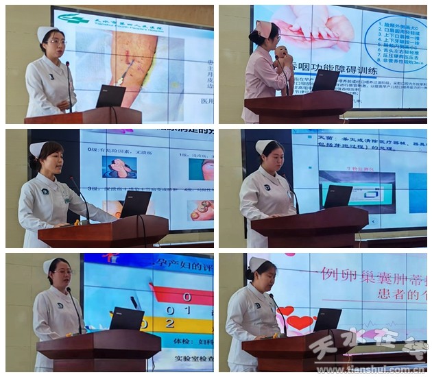 經(jīng)過近三個小時的激烈角逐,最終,產(chǎn)一科護士張瑞芳的《一體化產(chǎn)房》榮獲一等獎;內(nèi)五科護士祁美慧的《拒絕蓋大棚,防止皮膚損傷》,外三科護士和璐的《揚帆起航—老年髖部骨折》榮獲二等獎;產(chǎn)科門診護士邵杰瓊的《孕婦管理》,外一科護士溫雪娟的《1例經(jīng)尿道前列腺等離子剜除術(shù)后尿失禁的護理》,兒科護士王亞亞的《早產(chǎn)兒喂養(yǎng)不耐受的護理》榮獲三等獎。