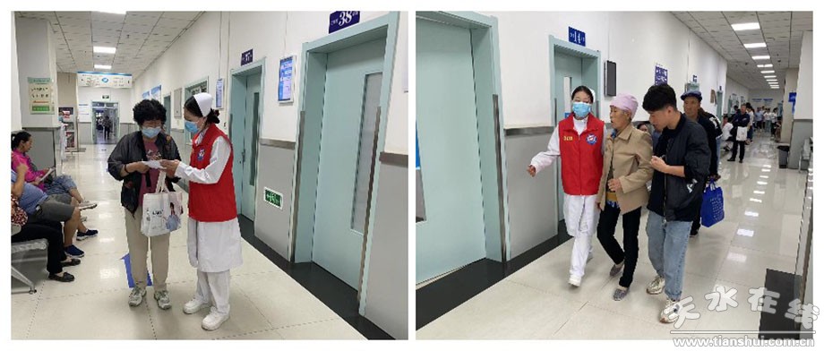 志愿者開展就醫(yī)幫助、文明倡導(dǎo)、心理關(guān)愛等志愿服務(wù),幫助患者了解就醫(yī)流程,指導(dǎo)患者進(jìn)行自助機(jī)使用,引導(dǎo)患者到達(dá)就診區(qū)域,主動(dòng)熱情地為老弱及行動(dòng)不便的患者提供幫助,協(xié)助醫(yī)護(hù)人員維護(hù)門診大廳文明就診秩序,開展控?zé)熜麄鳌⒔】敌,撫慰病患與家屬的情緒,提供心理支撐,協(xié)助陪伴病患度過候診及治療時(shí)出現(xiàn)的心理恐懼、不安,給予患者貼心的關(guān)懷。用實(shí)際行動(dòng)服務(wù)群眾,有效提高患者就診效率,縮短患者等候時(shí)間。