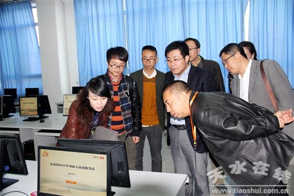 11月28日,2015年甘肅省導(dǎo)游人員資格考試(天水考區(qū))在甘肅工業(yè)職業(yè)技術(shù)學(xué)院順利舉行。甘肅省導(dǎo)游人員考評(píng)委員會(huì)導(dǎo)考辦副主任、人事處處長(zhǎng)李子明,省導(dǎo)考辦特派巡視員、隴南市旅游局副局長(zhǎng)胡淵,天水市文化和旅游局副調(diào)研員車延平,天水市旅游培訓(xùn)中心主任鄢全等省、市相關(guān)領(lǐng)導(dǎo)親臨考試現(xiàn)場(chǎng)巡視、指導(dǎo)工作。甘肅工業(yè)職業(yè)技術(shù)學(xué)院常務(wù)副校長(zhǎng)魯挑建、旅游學(xué)院院長(zhǎng)何瑛陪同。