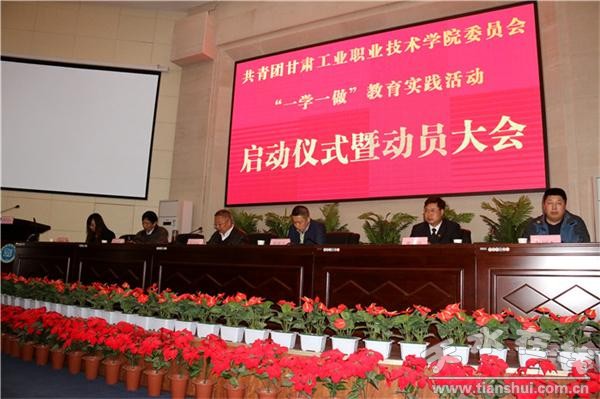 為深入學(xué)習(xí)習(xí)近平總書記系列講話精神,貫徹落實(shí)團(tuán)中央關(guān)于在全體共青團(tuán)員中開展“學(xué)習(xí)總書記講話,做合格共青團(tuán)員”會(huì)議精神,深入推進(jìn)共青團(tuán)改革,大力推進(jìn)從嚴(yán)治團(tuán),切實(shí)增強(qiáng)團(tuán)員的先進(jìn)性和光榮感,甘肅工業(yè)職業(yè)技術(shù)學(xué)院校團(tuán)委于4月11日,在該校圖書館報(bào)告廳舉行共青團(tuán)甘肅工業(yè)職業(yè)技術(shù)學(xué)院委員會(huì)“一學(xué)一做”教育實(shí)踐活動(dòng)啟動(dòng)儀式暨動(dòng)員大會(huì)。該校校黨委書記王志年、天水市團(tuán)市委青年權(quán)益部部長(zhǎng)何新宇、學(xué)校宣傳部長(zhǎng)楊建國(guó)出席,學(xué)校學(xué)工處長(zhǎng)、校團(tuán)委書記曹惠清、學(xué)工處副處長(zhǎng)韓國(guó)杰,以及各二級(jí)學(xué)院團(tuán)總支書記、副書記,各班團(tuán)支書、宣傳委員、組織委員代表參加啟動(dòng)儀式。