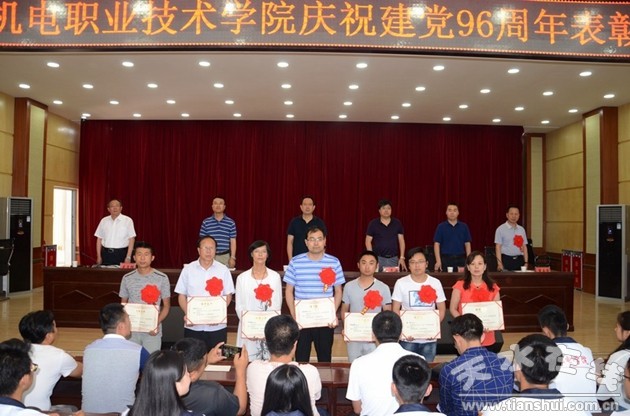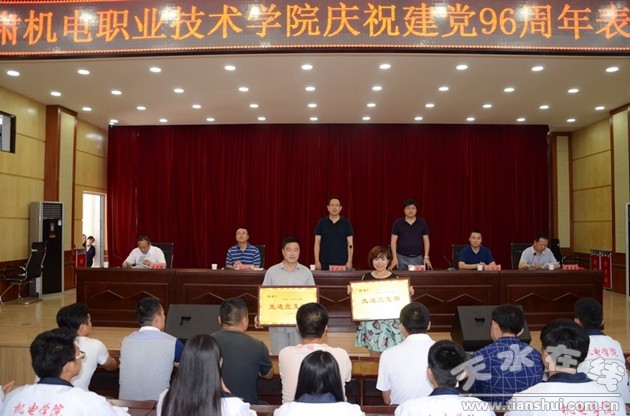 6月27日下午,甘肅機電職業(yè)技術(shù)學(xué)院在5#樓多功能廳隆重舉行慶祝建黨96周年表彰大會,對一年來在學(xué)院各項工作中涌現(xiàn)出來的優(yōu)秀共產(chǎn)黨員、優(yōu)秀黨務(wù)工作者、先進(jìn)黨支部進(jìn)行集中表彰。學(xué)院領(lǐng)導(dǎo)李宗義、趙彥軍、張德龍、毛文輝、霍五堂出席會議,全體黨員和在職教職工參加會議。