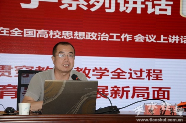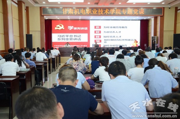 6月27日下午,甘肅機(jī)電職業(yè)技術(shù)學(xué)院副院長(zhǎng)李自勇在信息樓多功能廳為廣大師生作學(xué)習(xí)貫徹全國(guó)高校思想政治工作會(huì)議精神專題黨課,副院長(zhǎng)毛文輝主持。