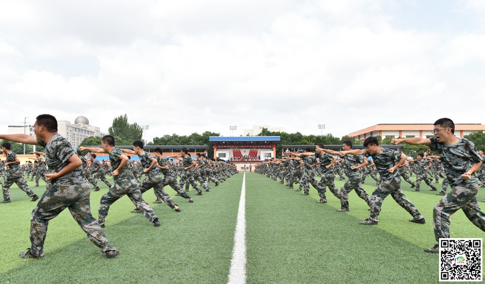 激昂的軍樂聲響起,分列式開始。各個方隊喊著嘹亮的口號、邁著整齊的步伐依次從主席臺前通過,接受學校領(lǐng)導的檢閱。在隨后的軍事科目表演中,進行了隊列示范和軍體拳表演,同學們昂揚向上的精神風貌、整齊劃一的動作贏得了現(xiàn)場觀眾的陣陣掌聲。