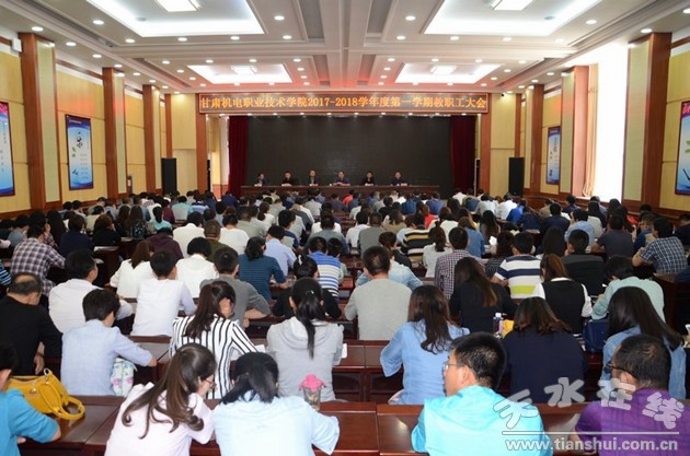 新學(xué)期開學(xué)當(dāng)天,9月1日下午,甘肅機(jī)電職業(yè)技術(shù)學(xué)院召開全體教職工大會,在家院領(lǐng)導(dǎo)李宗義、堅(jiān)葆林、張德龍、毛文輝、霍五堂出席會議,全體教職工參加。
