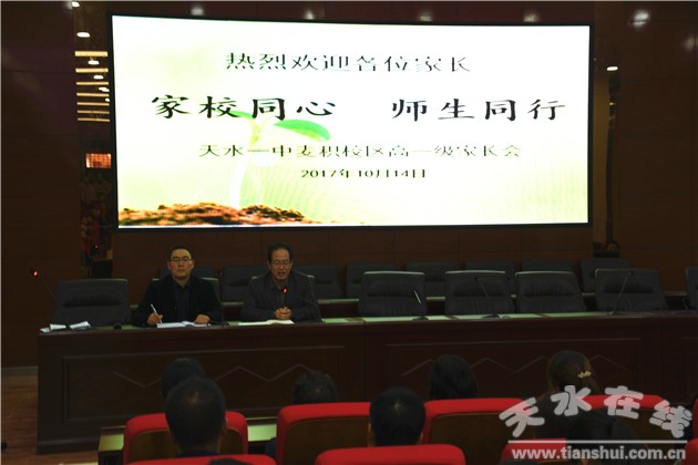 10月14日下午,天水一中麥積校區(qū)在主教學(xué)樓一樓報(bào)告廳召開(kāi)了第一學(xué)段考試分析家長(zhǎng)會(huì)。副校長(zhǎng)宋廷軍,教務(wù)二處副主任王金旺,高一級(jí)370余名學(xué)生家長(zhǎng)參加。高一級(jí)部級(jí)長(zhǎng)閆建峰主持會(huì)議。