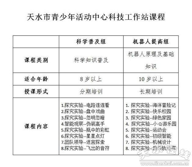 天水市青少年活動中心科技工作站大型公益招募活動開始了,創(chuàng)新讓童年精彩,科技使理想高飛,讓我們一起期待“從你開始,創(chuàng)造未來”。