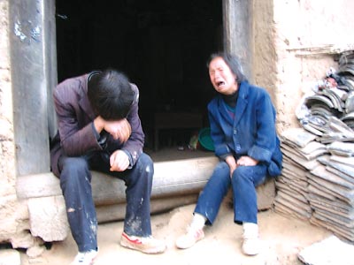 10月27日,記者前往大山深處的嚴(yán)河村采訪,走進嚴(yán)保平家,其家中蓋了3間土房,嚴(yán)保平70歲的父親由于遭受喪子之痛躺在炕上,他的母親是一個聾啞人,家里還有一個65歲的癡呆叔叔,嚴(yán)保平的兩個兒子分別只有4歲和2歲。嚴(yán)保平的妻子告訴記者,嚴(yán)保平是家里唯一的勞力,這一走家里人將無法生活。與嚴(yán)保平家相似,馬新元的死亡同樣給其家庭造成了巨大的打擊。雖然張曉林的家境比起嚴(yán)保平和馬新元好一點,但他的爺爺由于思念孫子變得有些癡呆,記者采訪期間,他一言不發(fā),眼淚一直順著臉頰流淌。