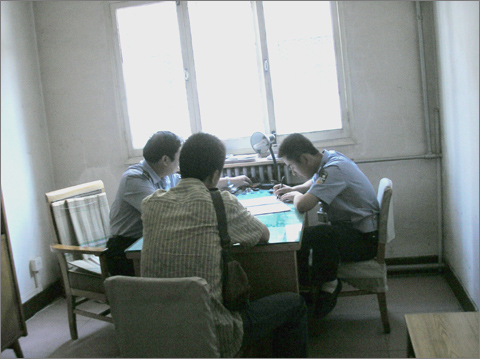 | 陳鴻濤在接受交警的調(diào)查 馬進帥 攝 |