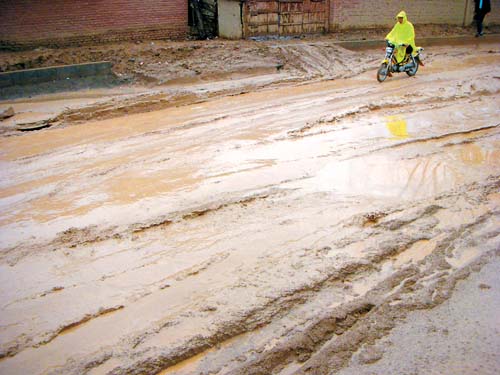 道路泥濘不堪。
