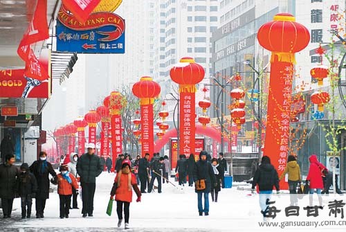 圖:春節(jié)臨近 蘭州各大街道布置一新 喜氣洋洋