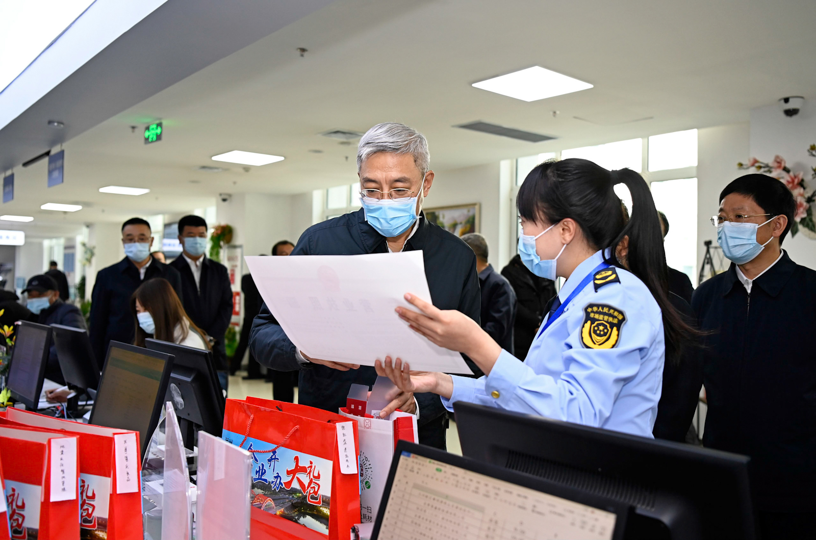 尹弘先后來(lái)到甘肅德福新材料有限公司、蘭州佛慈制藥股份有限公司、中川國(guó)際機(jī)場(chǎng)三期擴(kuò)建項(xiàng)目現(xiàn)場(chǎng)、蘭州新區(qū)政務(wù)服務(wù)中心,詳細(xì)了解企業(yè)生產(chǎn)經(jīng)營(yíng)、項(xiàng)目規(guī)劃建設(shè)、優(yōu)化營(yíng)商環(huán)境等情況。隨后,尹弘主持召開(kāi)座談會(huì),聽(tīng)取有關(guān)工作匯報(bào)。