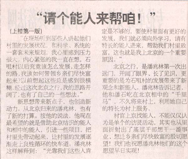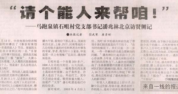 馬跑泉鎮(zhèn)石咀村黨支部書記潘兆林北京訪賢側(cè)記