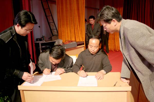 張克強區(qū)長代表區(qū)政府與各鄉(xiāng)鎮(zhèn)、街道辦事處及有關(guān)部門、單位簽訂2006年國土資源等《目標(biāo)管理責(zé)任書》