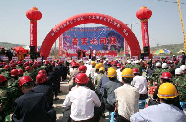 四月的天水姹紫嫣紅、鶯歌燕舞,到處一派春光明媚的景象。4月29日,在“五一”國(guó)際勞動(dòng)節(jié)來(lái)臨之際,由市總工會(huì)麥積區(qū)辦事處主辦、寶天高速公路協(xié)調(diào)辦協(xié)辦的大型慰問(wèn)演出“春天的問(wèn)候”在寶天高速公路BT19標(biāo)段建設(shè)工地拉開(kāi)帷幕,給寶天高速公路的建設(shè)者們送上一道豐盛、精美的節(jié)日文化大餐。