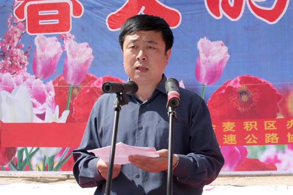 麥積區(qū)委書(shū)記蔣曉強(qiáng)代表區(qū)委、區(qū)政府和全區(qū)58萬(wàn)人民對(duì)辛勤奮戰(zhàn)在寶天高速公路建設(shè)一線的廣大建設(shè)者表示親切的慰問(wèn)和崇高的敬意。他說(shuō),寶天高速公路甘肅段是國(guó)家確定的西部大開(kāi)發(fā)十大重點(diǎn)工程之一,也是打通甘肅東出口的重要通道,更是天水乃至甘肅經(jīng)濟(jì)騰飛的新航道。為了支援西部大開(kāi)發(fā)、建好寶天高速路,廣大建設(shè)者從五湖四海來(lái)到隴上江南的麥積區(qū)安營(yíng)扎寨,風(fēng)餐露宿,克難攻堅(jiān),苦干實(shí)干,使工程建設(shè)取得重大進(jìn)展。特別是廣大建設(shè)者在工程建設(shè)中表現(xiàn)出來(lái)的求真務(wù)實(shí)的工作態(tài)度、科學(xué)管理的嚴(yán)謹(jǐn)作風(fēng)、頑強(qiáng)拼搏的進(jìn)取精神、默默無(wú)聞的奉獻(xiàn)意識(shí),更為麥積區(qū)廣大勞動(dòng)者樹(shù)立了學(xué)習(xí)的榜樣,建設(shè)者們?yōu)閷毺旄咚俟方ㄔO(shè)付出的辛勤勞動(dòng)和汗水將永遠(yuǎn)銘記在麥積人民心中。