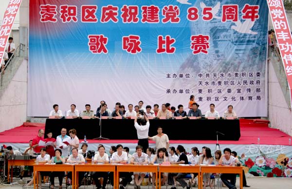 為了隆重紀(jì)念黨的85歲華誕,6月29日晚,麥積區(qū)在道北體育場隆重舉行以“歌頌共產(chǎn)黨、歌頌社會主義、歌頌改革開放”為主題的慶祝建黨85周年大型歌詠比賽,給黨的生日獻上了一份厚禮。