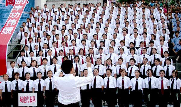 本次活動共有來自麥積區(qū)各機關(guān)單位、老干部、駐區(qū)部隊、學(xué)校及社會各界的代表近3000人參加,組成14個方隊,每隊兩首歌,以緬懷黨的光輝歷程、謳歌黨的豐功偉績?yōu)橹餍,整個比賽現(xiàn)場歌聲嘹亮,高潮迭起。其間還有鐵路幼兒園的小朋友和老師及武術(shù)隊朋友表演了精彩的節(jié)目。