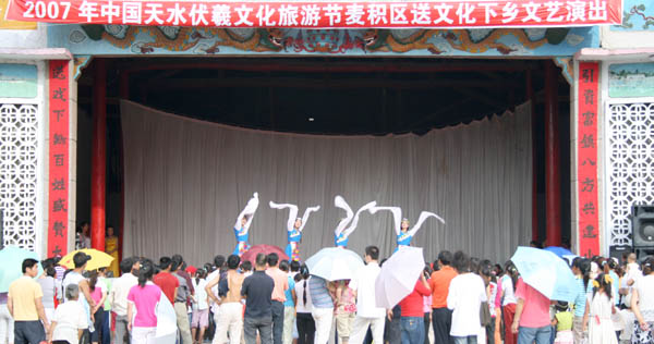 6月24日,2007中國天水伏羲文化旅游節(jié)麥積區(qū)送文化下鄉(xiāng)文藝演出活動,在我市素有“東大門”之稱的東岔鎮(zhèn)精彩上演,受到當(dāng)?shù)厝罕姷臒崃覛g迎。