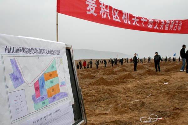 為了有力支持全區(qū)今年秋冬季建園工作全面有序展開,11月14日上午,麥積區(qū)四大組織在家領(lǐng)導(dǎo)帶頭開展的區(qū)直機(jī)關(guān)干部義務(wù)植樹活動在南山萬畝蘋果基地全面拉開帷幕。
