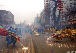 2月19日(農(nóng)歷的正月十三)上午,沉浸在新春節(jié)日氛圍中的麥積城人潮涌動(dòng),鼓樂(lè)喧天。舞獅舞龍、威風(fēng)鑼鼓、彩車、秧歌、高臺(tái) 、方隊(duì)、高蹺等一隊(duì)隊(duì)生龍活虎、各具特色的社火表演把麥積城裝扮成一片歡樂(lè)的海洋。當(dāng)天,麥積區(qū)“2008年春節(jié)社火”大型文化活動(dòng)把全區(qū)人民慶新春、過(guò)大年的喜慶和歡樂(lè)再一次推向高潮。