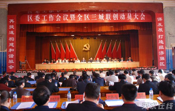 天水在線訊(記者汪成保)4月25日,麥積區(qū)召開區(qū)委工作會議暨全區(qū)“三城聯(lián)創(chuàng)”工作動(dòng)員大會,全面安排部署“三城聯(lián)創(chuàng)”工作,動(dòng)員全區(qū)各級各部門和社會各界力量,凝心聚力,真抓實(shí)干,迅速掀起“三城聯(lián)創(chuàng)”活動(dòng)高潮。