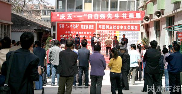 區(qū)委常委、宣傳部長臧志軍在講話中說,田自強先生文化工作成績突出,書畫創(chuàng)作成果顯著,深受廣大群眾的贊譽。希望全區(qū)廣大文藝工作者以田自強先生為榜樣,深入生活,深入實際、深入群眾,努力弘揚社會主義先進文化,唱響時代主旋律,創(chuàng)作出一批反映人民群眾現(xiàn)實生活和喜聞樂見的藝術精品,尤其是立足麥積實際,創(chuàng)作一批反映麥積山川風貌、風土人情以及建設新麥積中涌現(xiàn)出來的先進典型藝術作品,從而凝心聚力,鼓舞士氣,為實現(xiàn)麥積經濟社會新一輪提速發(fā)展做出貢獻。
