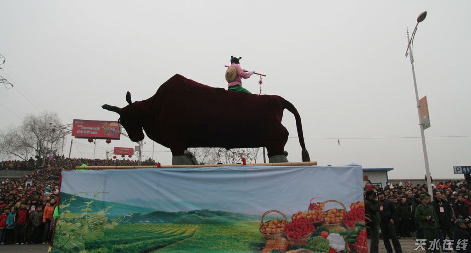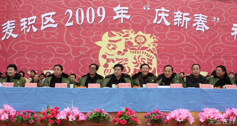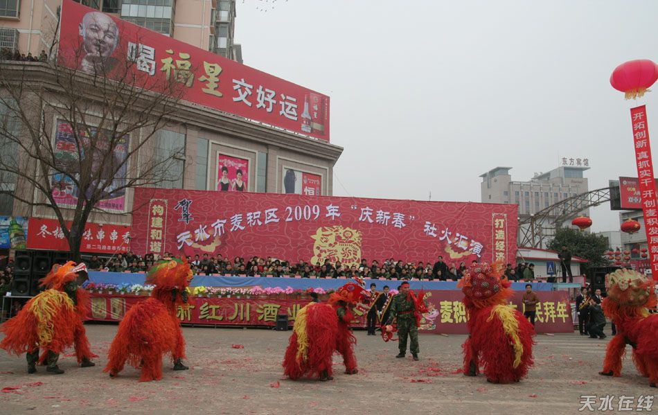 (天水在線 麥積區(qū)委外宣辦聯(lián)合報道)子鼠辭舊歲,金牛迎春來。2月7日(正月十三日)上午,麥積區(qū)在渭濱北路人行便橋頭隆重舉行2009年“慶新春”社火匯演。