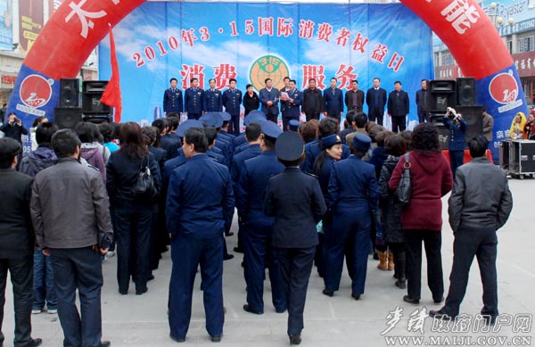 活動(dòng)儀式上,區(qū)委常委、政法委書(shū)記尹首奎代表區(qū)委、區(qū)政府向全區(qū)廣大消費(fèi)者表示節(jié)日的問(wèn)候!向?yàn)楸Wo(hù)消費(fèi)者合法權(quán)益辛勤工作的廣大執(zhí)法人員致以親切的問(wèn)候和衷心的感謝!他要求,區(qū)消費(fèi)者協(xié)會(huì)和相關(guān)職能部門(mén)要認(rèn)真開(kāi)展好“消費(fèi)與服務(wù)”年主題活動(dòng),進(jìn)一步加強(qiáng)對(duì)商品質(zhì)量和售后服務(wù)的社會(huì)監(jiān)督,切實(shí)提高處理消費(fèi)者投訴的能力,最大限度地減少消費(fèi)者的損失;新聞媒體要充分發(fā)揮輿論監(jiān)督的作用,及時(shí)曝光違法行為,大力宣傳先進(jìn)典型,努力營(yíng)造全社會(huì)關(guān)心、支持、保護(hù)消費(fèi)者合法權(quán)益的良好氛圍。