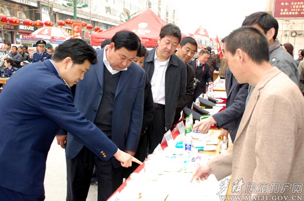 活動(dòng)現(xiàn)場(chǎng),來(lái)自麥積區(qū)工商分局、技術(shù)監(jiān)督局、衛(wèi)生監(jiān)督所、食品藥品安全監(jiān)督管理局、電力局、鹽務(wù)局、煙草專(zhuān)賣(mài)局等單位的工作人員,走上街頭向過(guò)往市民發(fā)放了消費(fèi)維權(quán)、醫(yī)療保健、食品安全等方面的宣傳材料,將假冒香煙、食品、飲料、食鹽等擺上宣傳臺(tái)為廣大消費(fèi)者詳細(xì)講解辨別真?zhèn)蔚姆椒,并設(shè)置投訴臺(tái)、咨詢(xún)臺(tái),受理群眾投訴、接受群眾咨詢(xún),認(rèn)真解答消費(fèi)維權(quán)等和群眾生產(chǎn)生活息息相關(guān)的問(wèn)題。