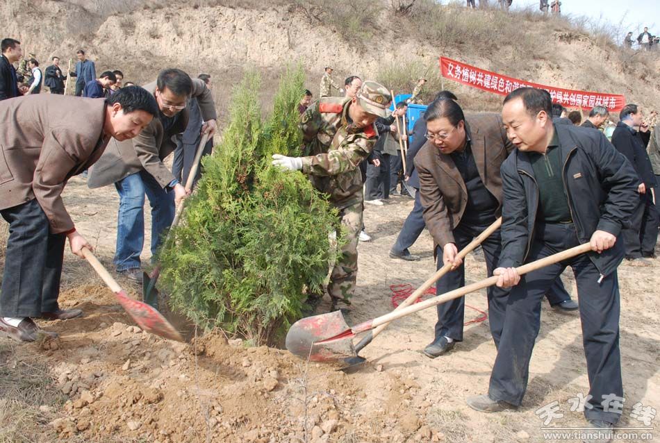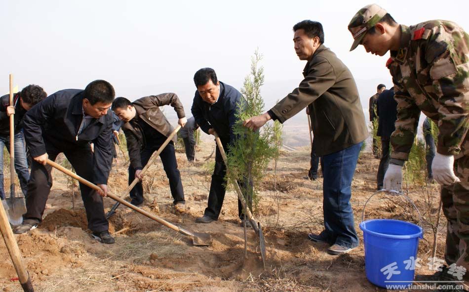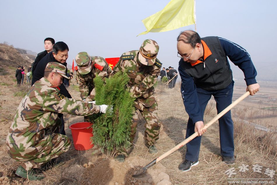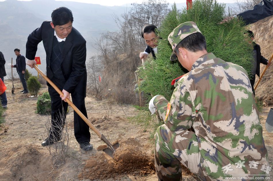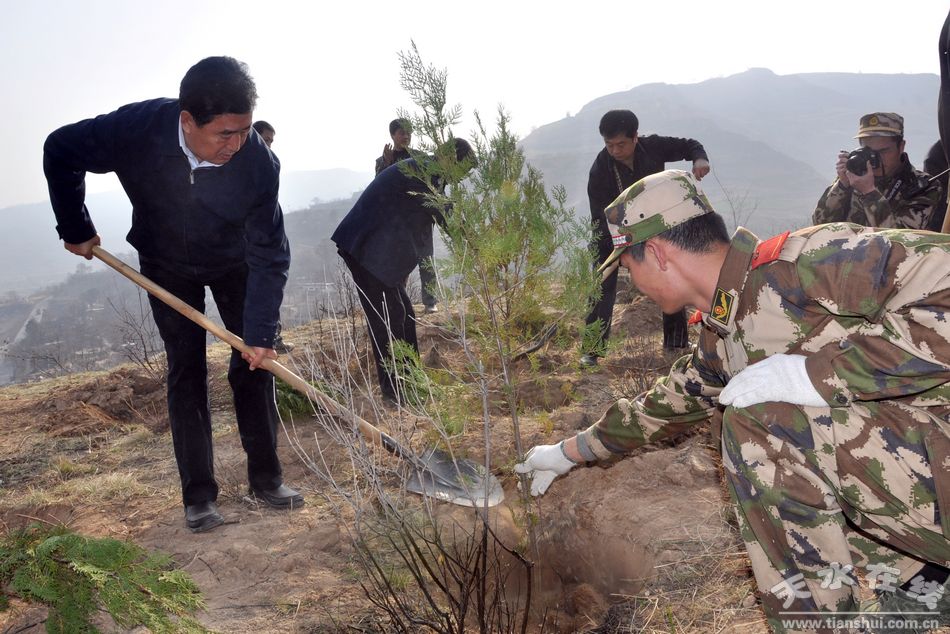 3月19日上午,天水市委書記、市人大常委會(huì)主任張景輝,市委副書記、市長(zhǎng)李文卿,市政協(xié)主席宋敬國(guó)等市四大組織在家領(lǐng)導(dǎo)帶領(lǐng)機(jī)關(guān)干部群眾和麥積區(qū)四大組織干部群眾、武警森林麥積大隊(duì)官兵來(lái)到麥積區(qū)馬跑泉鎮(zhèn)南崖村參加義務(wù)植樹活動(dòng)。