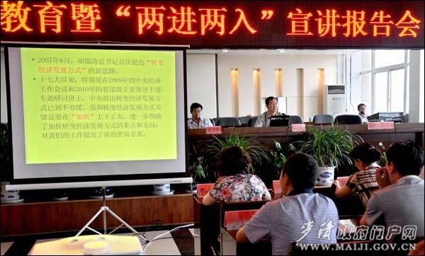 臧志軍主持報告會并在總結講話中指出,這次宣講活動對于我們進一步解放思想、優(yōu)化思路、創(chuàng)新機制,加快轉變經(jīng)濟發(fā)展方式,促進麥積跨越式科學發(fā)展,具有十分重要的指導意義。他要求,全區(qū)各鄉(xiāng)鎮(zhèn)、各部門要認真落實宣講會精神,迅速掀起學習理論熱潮。廣大黨員干部不僅要帶頭學習、帶頭貫徹、帶頭落實,作好表率,而且要深入基層、調(diào)查研究,指導組織好本鄉(xiāng)鎮(zhèn)本單位的干部理論學習。同時要結合實際,創(chuàng)新開展形勢政策教育的好方法、好途徑、好形式,扎扎實實開展好形勢政策教育活動,不斷提高干部理論學習的積極性,使全區(qū)干部群眾實現(xiàn)由理論向實踐的轉化,推動黨員干部在更高層次上解放思想,在更高平臺上謀劃發(fā)展,促進全區(qū)經(jīng)濟社會跨越式科學發(fā)展。