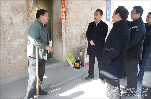 春節(jié)臨近,1月13日,麥積區(qū)委副書記、區(qū)長成少平,區(qū)委常委、政法委書記臧志軍,區(qū)委常委、馬跑泉鎮(zhèn)黨委書記杜崢嶸,區(qū)人大常委會副主任劉克寧,區(qū)政協(xié)副主席王啟峰等領(lǐng)導走訪慰問了部分離退休老干部、困難黨員、優(yōu)秀黨員、特困戶、殘疾人、困難職工、二女戶和優(yōu)秀知識分子,為他們送上慰問金和慰問品,送上新春祝福和誠摯問候。