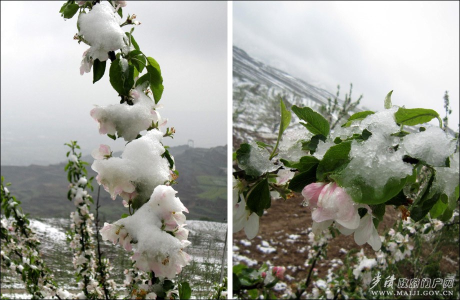 受蒙古強冷空氣南下的影響,4月24日夜至25日早晨,麥積區(qū)出現(xiàn)大范圍降雨、降溫天氣,山區(qū)出現(xiàn)了降雪和低溫冰凍極端天氣,農(nóng)田大面積嚴重受災。截至25日下午5時統(tǒng)計,全區(qū)17個鄉(xiāng)鎮(zhèn)和道北街道辦事處的165個村受災,受災人口4.84萬戶、21.79萬人。