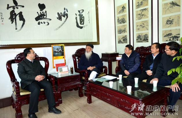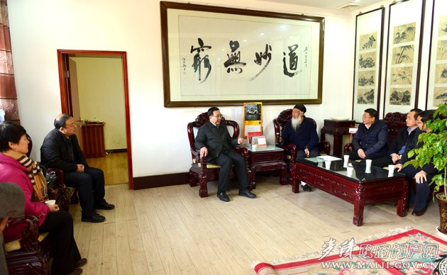 新春佳節(jié)即將到來(lái)之際,2月7日,麥積區(qū)委書(shū)記張智明,區(qū)人大常委會(huì)主任賈應(yīng)珍,區(qū)委副書(shū)記、區(qū)長(zhǎng)成少平,區(qū)政協(xié)主席楊續(xù)祥,區(qū)委副書(shū)記吳健,區(qū)委常委、宣傳部長(zhǎng)董珺一行專程前往陜西周至縣樓觀臺(tái),看望了全國(guó)政協(xié)常委、全國(guó)政協(xié)民族和宗教委員會(huì)副主任、中國(guó)道教協(xié)會(huì)會(huì)長(zhǎng)任法融,向他表示節(jié)日的問(wèn)候和新春的祝福。