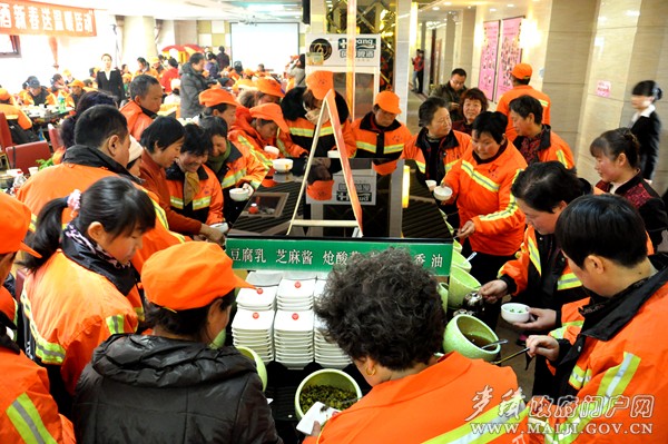 免費(fèi)請400多人吃火鍋,這可是一筆不小的開支,但是談及如此“任性”舉動的原因時(shí),福順餐飲負(fù)責(zé)人李永薈卻有自己的一番見解!碍h(huán)衛(wèi)工人是我們城市的美容師,平時(shí)干著最臟最累的活,才換來了城市的潔凈,所以免費(fèi)請環(huán)衛(wèi)工人們吃個(gè)自家的火鍋,聊表心意和敬意!