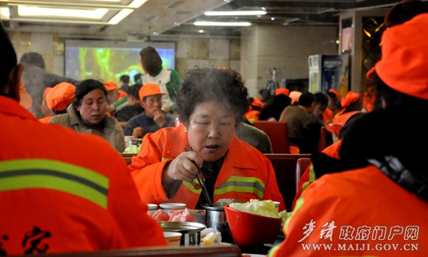 一份小小的火鍋,在寒日里像一股暖流,注進(jìn)了每一位環(huán)衛(wèi)工人的心房。