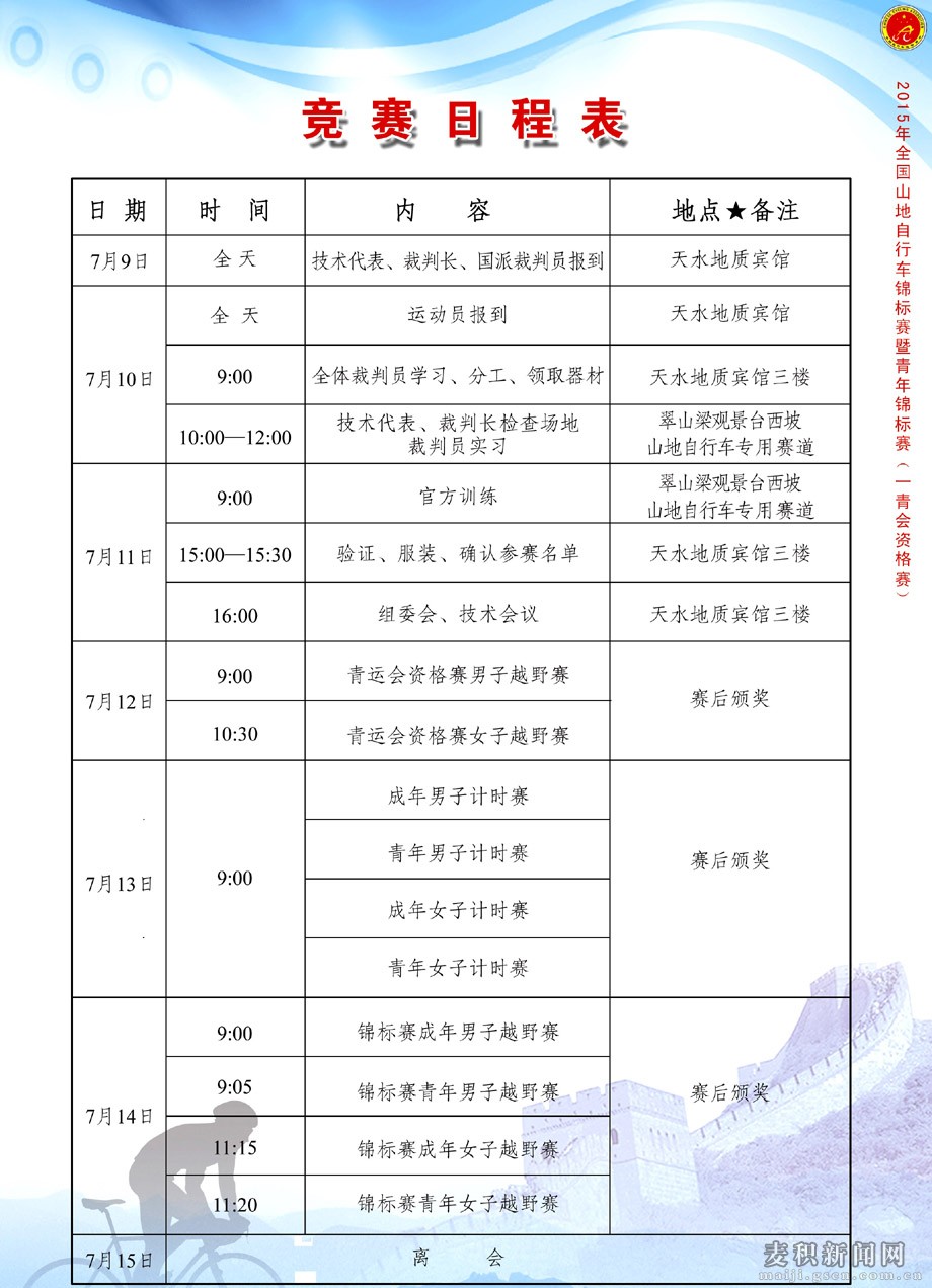 全國山地自行車錦標賽暨青年錦標賽競賽日程