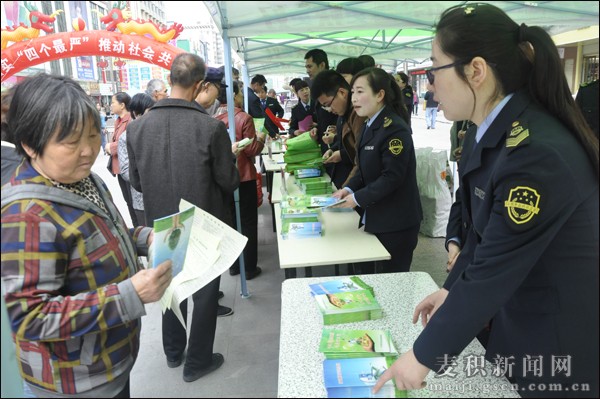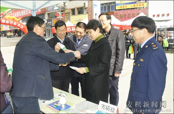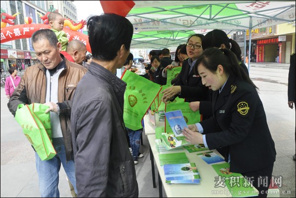 為擴(kuò)大食品藥品監(jiān)管社會(huì)影響,進(jìn)一步提升12331投訴舉報(bào)熱線的品牌知名度和公眾知曉度,強(qiáng)化公眾飲食用藥安全意識(shí),引導(dǎo)社會(huì)各界積極參與食品藥品監(jiān)督,推動(dòng)形成社會(huì)共治格局。3月31日,麥積區(qū)食安辦、麥積區(qū)食藥監(jiān)局牽頭組織區(qū)工商局、質(zhì)檢局、農(nóng)業(yè)局、畜牧局、綜合執(zhí)法局、衛(wèi)計(jì)局、衛(wèi)生監(jiān)督所及鹽業(yè)公司、食品、藥品經(jīng)營(yíng)單位在二馬路步行街中段舉行了以“落實(shí)‘四個(gè)最嚴(yán)’推動(dòng)社會(huì)共治”為主題的全區(qū)食品藥品監(jiān)管暨12331投訴舉報(bào)“3·31”主題宣傳日活動(dòng)。