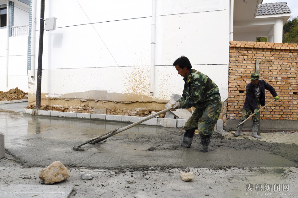 近日,工人正在麥積區(qū)麥積鎮(zhèn)陳山新村建設現(xiàn)場施工。城山新村是2015年異地扶貧搬遷工程之一,目前一期107戶基本完工,二期在平整土地,準備開建。