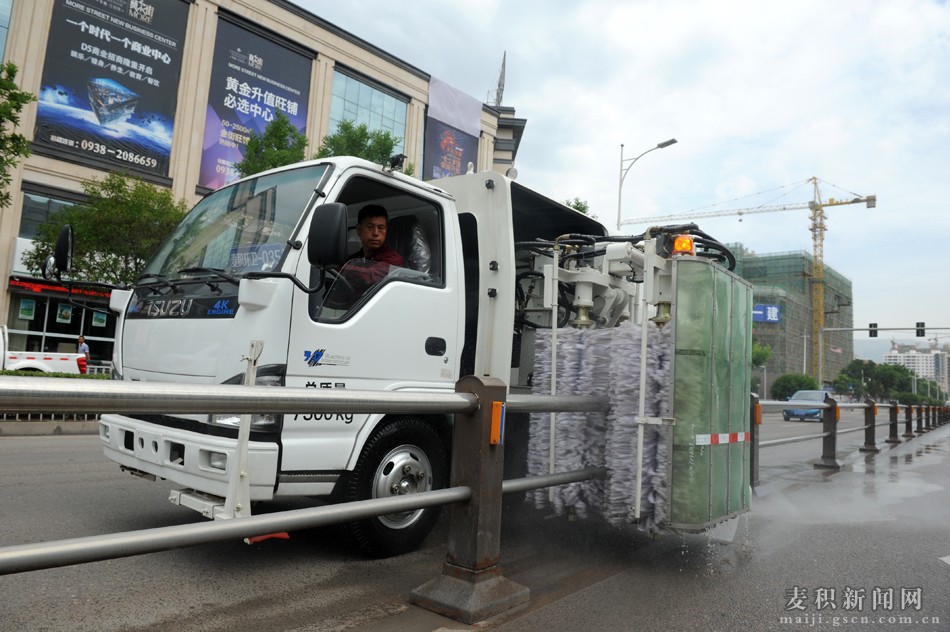 “隨著城區(qū)機(jī)動(dòng)車的日益增多,汽車尾氣和揚(yáng)塵造成大氣污染,為預(yù)防和緩解這一現(xiàn)象,上級(jí)主管部門專門配置了以降塵防霾為主要功能的多功能抑塵車,該車同時(shí)具備灑水車功能,噴射的水霧顆粒達(dá)到微米級(jí),水霧顆粒比PM2.5還小更易吸附,能有效分解空氣中的污染顆粒物、塵埃等,有效緩解霧霾。通過抑塵除污車的大量使用,降低了人力強(qiáng)度,將有限的人力用在城區(qū)環(huán)境管理各個(gè)角落,進(jìn)一步提升了城區(qū)環(huán)境衛(wèi)生管控水平。”麥積區(qū)環(huán)境衛(wèi)生管理局副局長王興國告訴記者。
