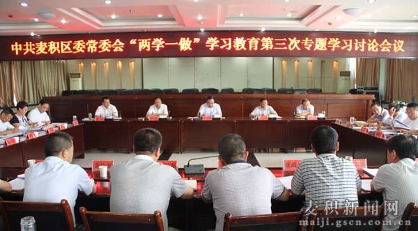 8月23日,中共天水市麥積區(qū)委常委會召開“兩學一做”學習教育第三次專題學習討論會。區(qū)委書記張智明主持會議并講話,區(qū)委常委吳健、張麟、牛新虎、茍鐘靈、臧志軍、董珺、趙繼文、王彥軍、杜崢嶸出席會議。區(qū)人大常委會主任賈應珍,區(qū)政協(xié)主席楊續(xù)祥,副區(qū)長巢春偉、汪永臻、郭大偉及法檢兩院、區(qū)委各部門負責人列席會議。
