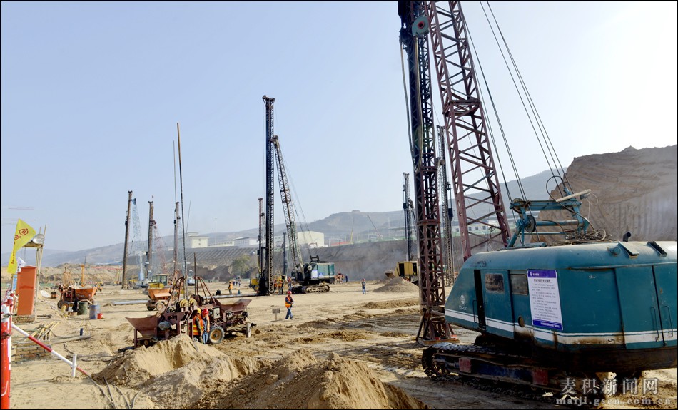 12月5日,記者在天水南站站前廣場(chǎng)施工現(xiàn)場(chǎng)看到一派繁忙的建設(shè)場(chǎng)景,各種工程車(chē)輛來(lái)來(lái)往往,打樁機(jī)的聲音震耳欲聾,施工場(chǎng)面震撼而有序。