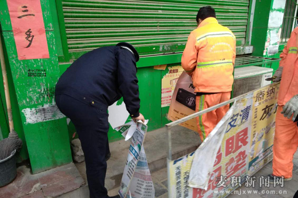 為了有效推進優(yōu)化城市環(huán)境提升城市形象工程,近日,麥積區(qū)城管局按照“集中整治、疏堵結(jié)合、規(guī)范引導(dǎo)、強化監(jiān)督”的思路,扎實開展規(guī)范路市容市貌整治行動。本次整治的重點為橋南轄區(qū)的鳳凰路、伯陽西路占道經(jīng)營、亂搭亂建的彩鋼棚、違規(guī)設(shè)置的燈箱廣告等。