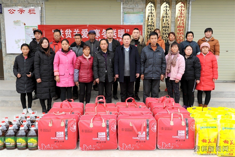12月15日,麥積區(qū)伏羲御果電子商務(wù)有限公司工作人員走進(jìn)馬跑泉鎮(zhèn)王家沽沱村,為該村15戶精準(zhǔn)扶貧戶送去棉被、大米和食用油,讓寒冬里的貧困戶感受到了社會(huì)大家庭和愛心企業(yè)的溫暖。