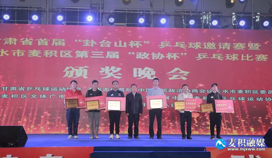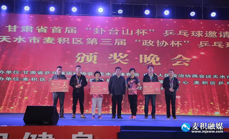 麥積區(qū)融媒體中心訊 5月28日,“全民同健身、踐行二十大”甘肅省首屆“卦臺山杯”乒乓球邀請賽暨天水市麥積區(qū)第三屆“政協(xié)杯”乒乓球比賽圓滿閉幕。當晚8時,在麥積區(qū)道北群眾文化體育活動中心綜合館隆重舉行閉幕式暨頒獎晚會。