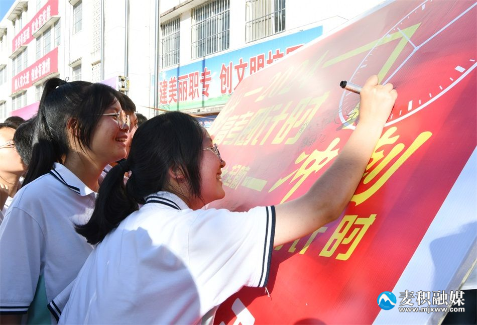 最后,麥積職專2021級學子在會場主背景墻和2024高考倒計時簽名墻上簽名,增強了莘莘學子沖刺高考的自信力,激發(fā)了學生們的滿腔熱血。他們一致表示,將以高昂的斗志、振奮的精神、飽滿的熱情全身心投入到2024年高考沖刺的戰(zhàn)斗中去。 【編輯 劉妞】