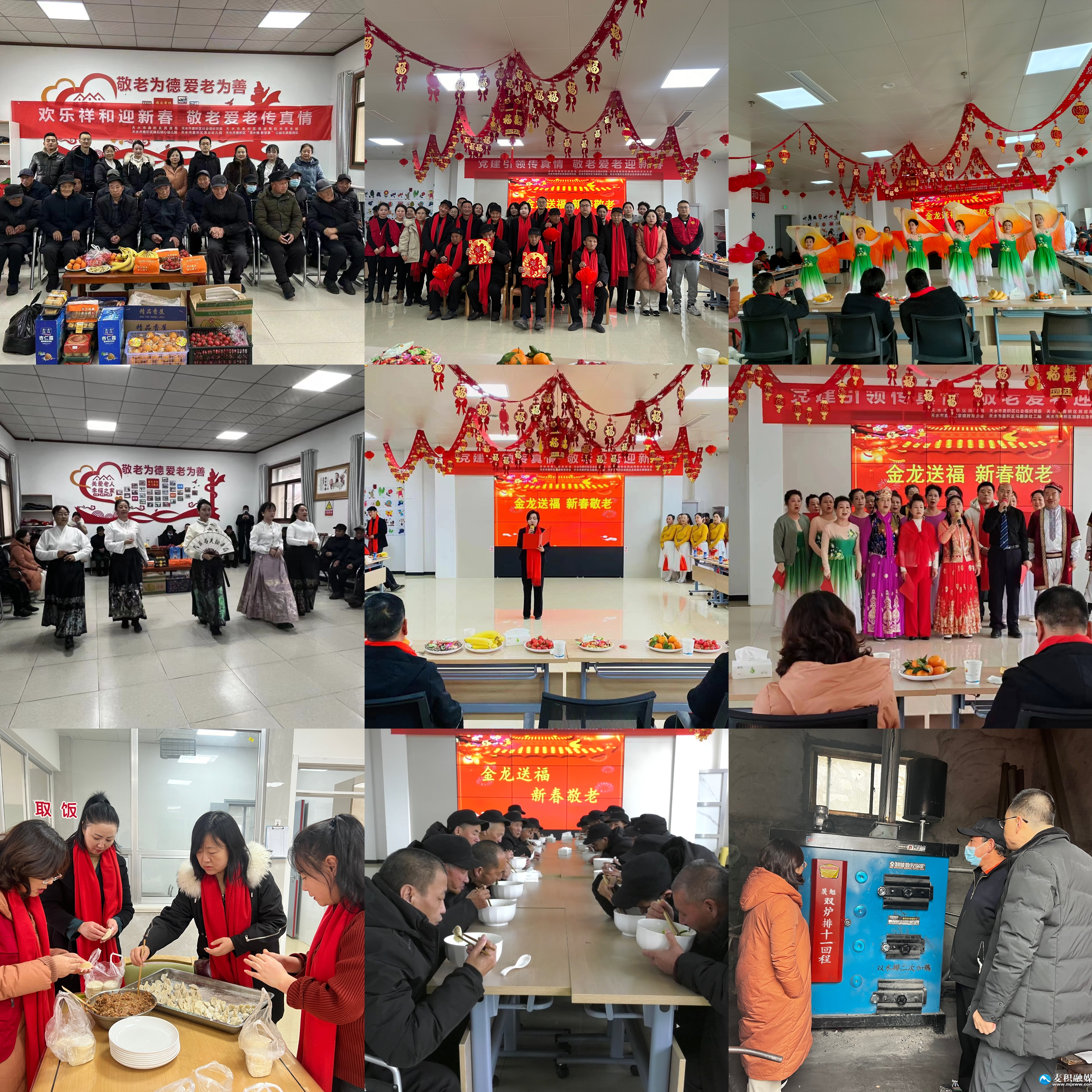 活動(dòng)在《美麗中國(guó)》的舞蹈中拉開帷幕!段沂且粭l小河》《微山湖》等歌舞表演精彩紛呈,現(xiàn)場(chǎng)反響熱烈、掌聲不斷,在場(chǎng)的老人們臉上都洋溢著幸福的笑容,整個(gè)活動(dòng)現(xiàn)場(chǎng)暖意融融。區(qū)民政局工作人員和志愿者們?yōu)槔先藗儼溩、打掃房間,并送上了水果、點(diǎn)心等慰問品,并為老人們備足了春節(jié)食材。